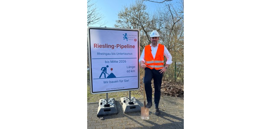 Der Startschuss für die Riesling-Pipeline vom Rheingau in den Untertaunus ist gefallen: Landrat Sandro Zehner setzte heute symbolisch und stellvertretend für die gesamte kommunale Familie des Rheingau-Taunus-Kreises den ersten Spatenstich für das lange hinter verschlossenen Türen geplante Bauprojekt. Das im ersten Bauabschnitt 60 Kilometer lange, unterirdisch verlaufende Rohrsystem soll im Sommer 2026 bereits fertiggestellt sein. Eine Anbindung der Hauptstadt Berlin über den Landkreis Fulda ist in Planung.